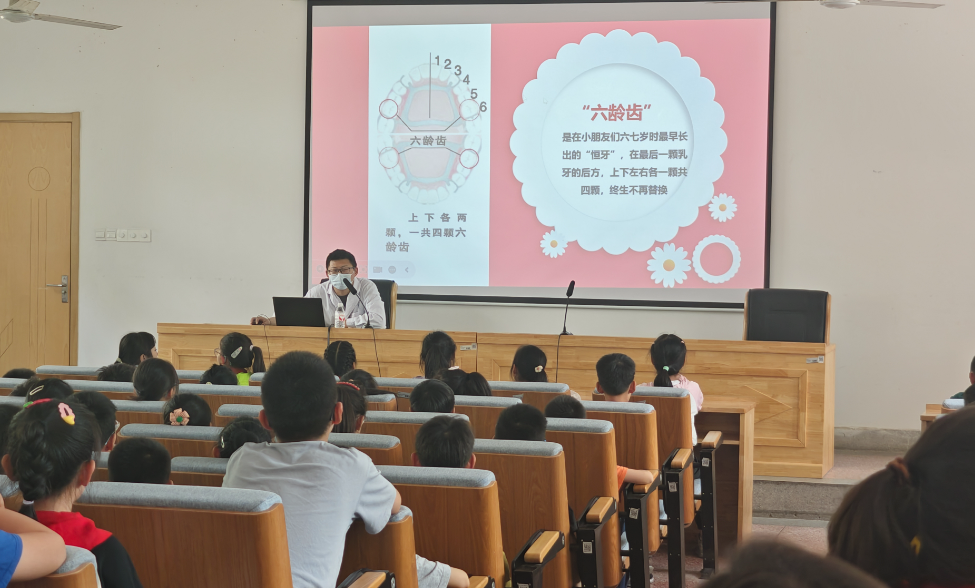 讲座主要向同学们介绍了牙齿的功能、六龄齿、蛀牙的危害、窝沟封闭的适应症等相关内容。医生讲的有趣,学生听得认真,积极互动。