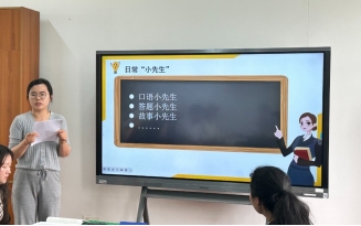 丁兰老师以“教室里的星火”为题,分享了英语课堂的“三阶段”实践:语篇感知阶段由“小先生”领读提问,语篇理解阶段学生互评作文,课后拓展阶段通过剧本表演与诵读活动深化语言运用,课前一般安排两个类型任务由小先生示范:一是表演,二是朗读、背诵优质的课外文章;根据课时内容的需要安排不同的小先生。她坦言,如何扩大“小先生”覆盖面、丰富活动形式仍是未来探索方向。