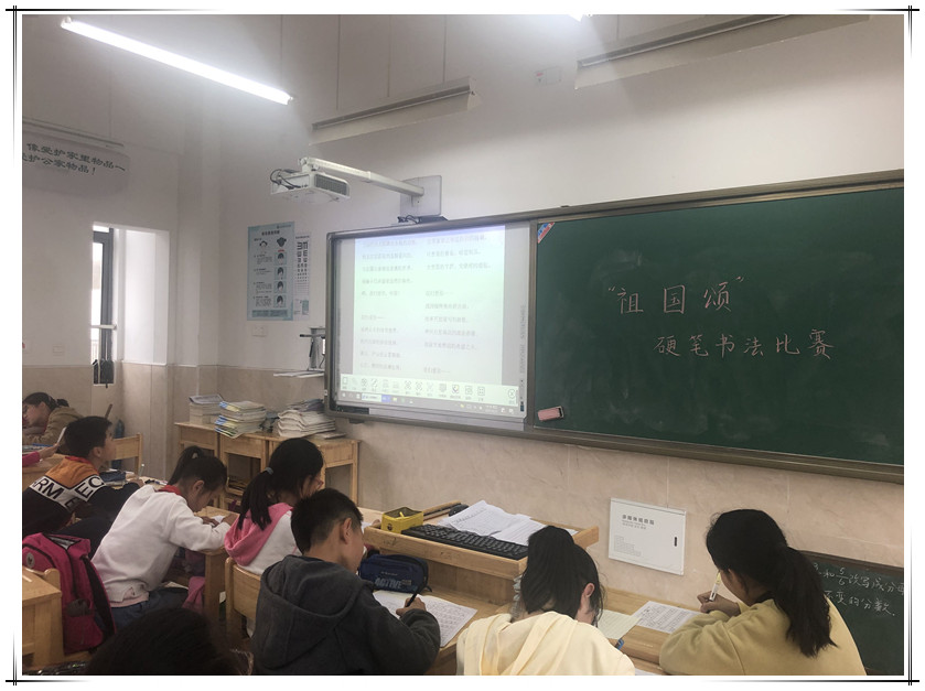 为传承和发扬中国书法的历史文化,激发学生对祖国灿烂文化和语言文字的热爱之情,进一步引起学生对书写的高度重视,培养他们正确的书写习惯,引导学生把汉字写得正确、端正、整洁美观,从整体上提高学生的书写质量,让学生从小练就一手好字,受益终身,五年级语文组开展了“祖国颂”硬笔书法比赛。